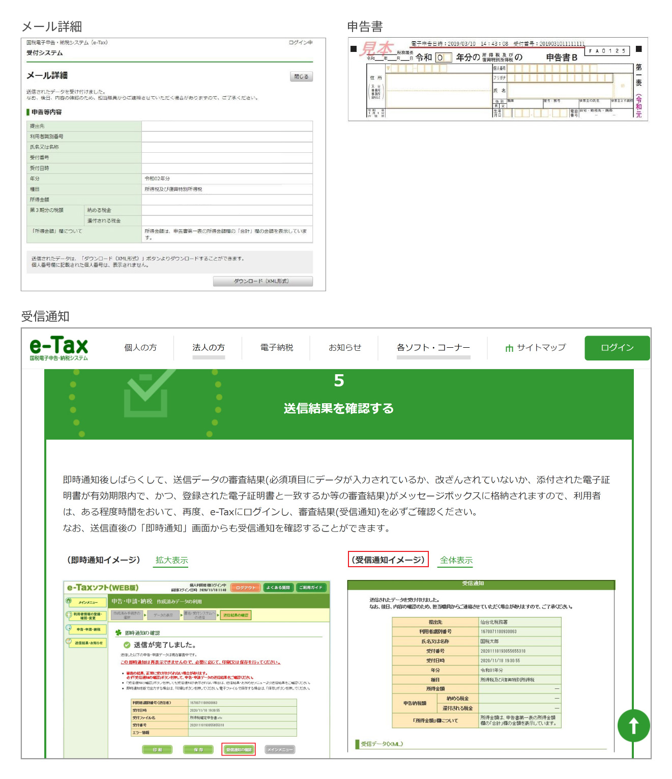 「受信通知」のほか「メール詳細」、「申告書等送信票」を含みます。